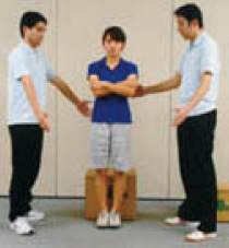 (測定時の転倒防止のため、両側に1名ずつの補助者を必ずつけてください。)